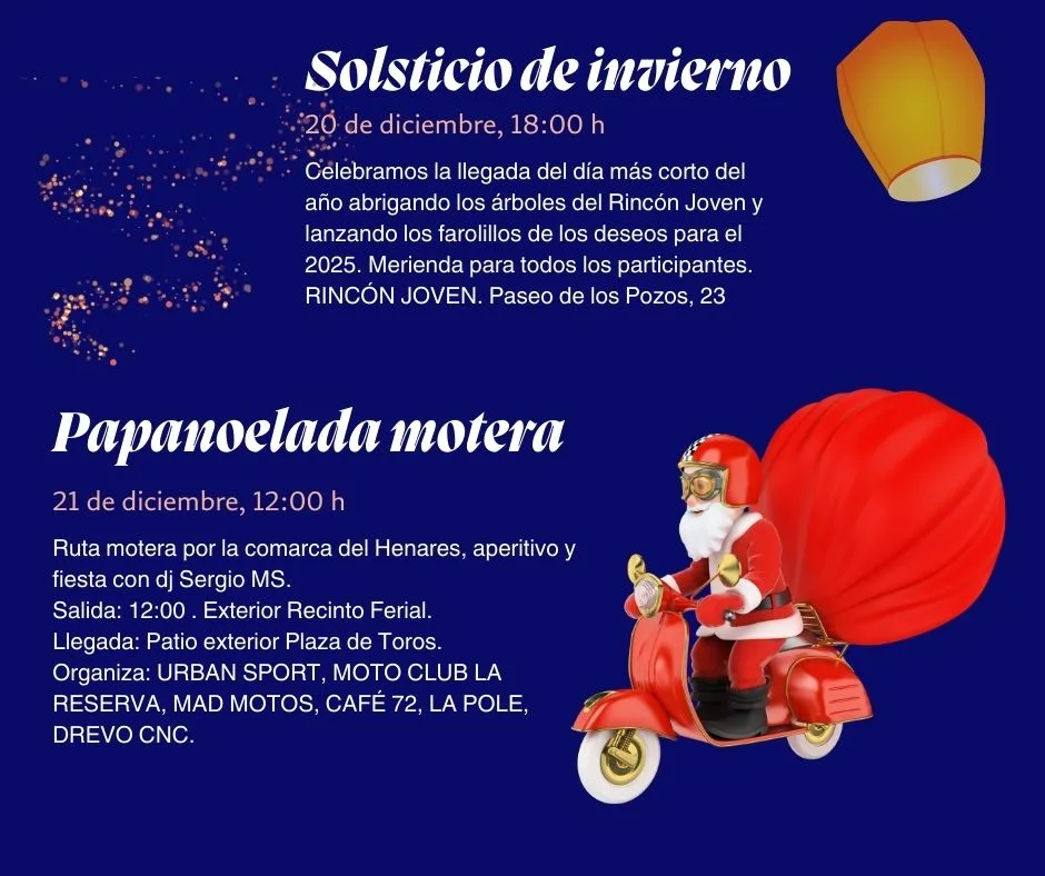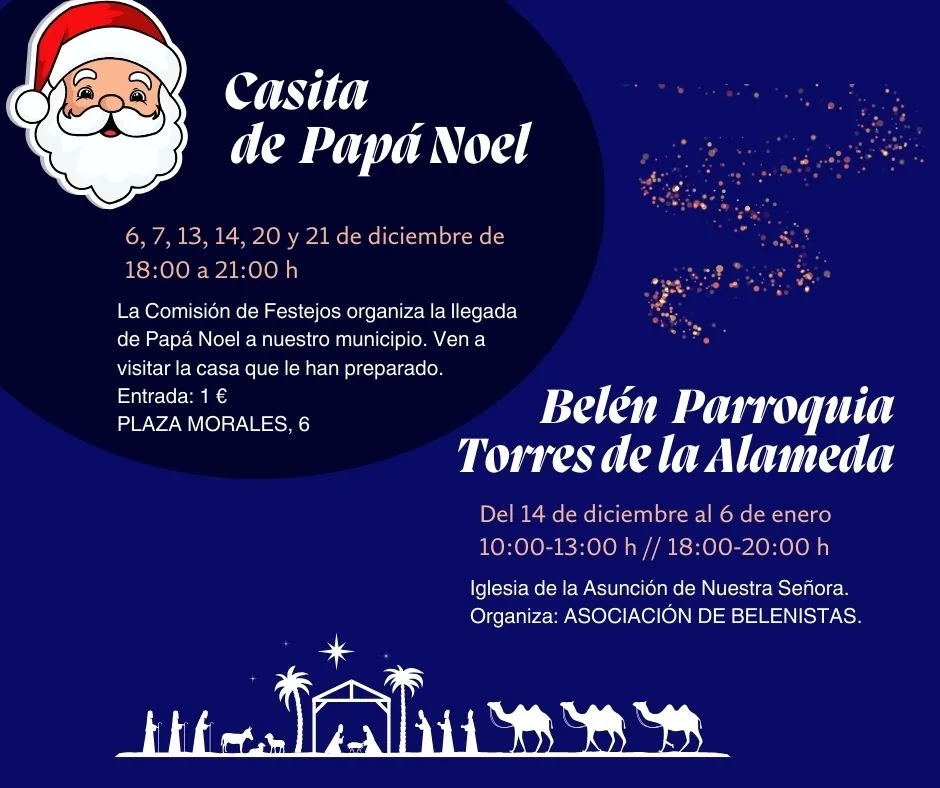 La llegada de Papá Noel marcará el inicio oficial de la Navidad. Mañana a partir de las 17:30 h la Comitiva de Papá Noel recorrerá las calles anunciando la apertura de la Casita de Papá Noel, que estará abierta los días 6, 7, 13, 14, 20 y 21 de diciembre, de 18:00 a 21:00 h. Los elfos de la Comisión de Festejos tienen sorpresas mágicas para pequeños y mayores.