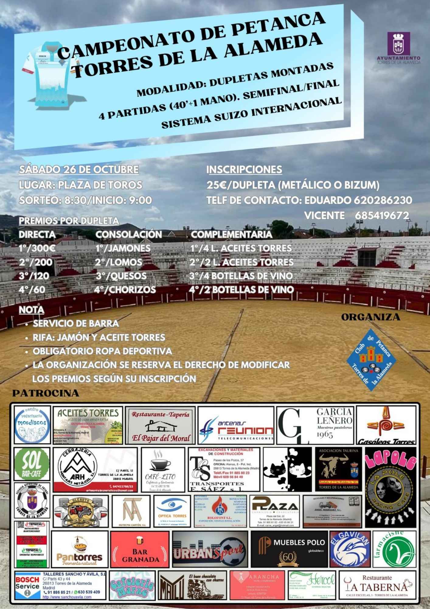 El próximo sábado 26 de octubre el Club de Petanca de Torres organiza el Campeonato de Petanca de Torres de la Alameda.