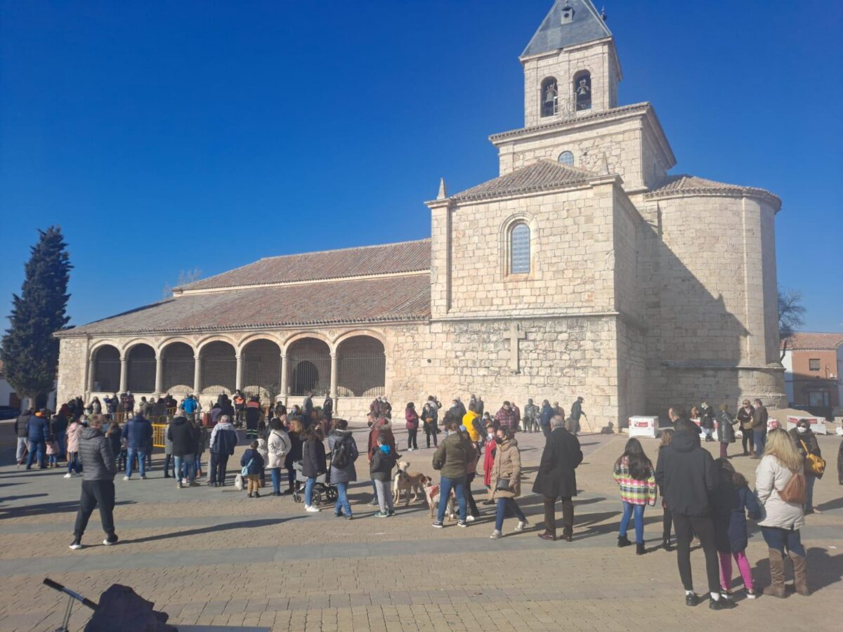 En la plaza del Sol, enfrente de la iglesia, los vecinos se juntan y esperan para la bendición de sus animales de compañía, la bendición de la reliquia del santo y la entrega de panecillos de san Antón. También, se les entrega a los asistentes algún pequeño bocado.