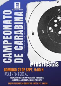| Campeonato de Carabina | ![]() | 21 de septiembre | 9:00 | Recinto Ferial. | Inscripciones media hora antes del inicio. | |