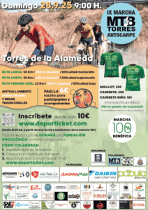 | IX Marcha solidaria MTB Torres | ![]() | 28 de septiembre | 9:00 | Recinto Ferial | Inscripciones cerradas | |