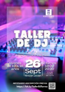 | Taller de DJS | ![]() | 26 de septiembre | 17:00 | Nave Rincón Joven | Inscripciones hasta agotar plazas | Inscripción |
