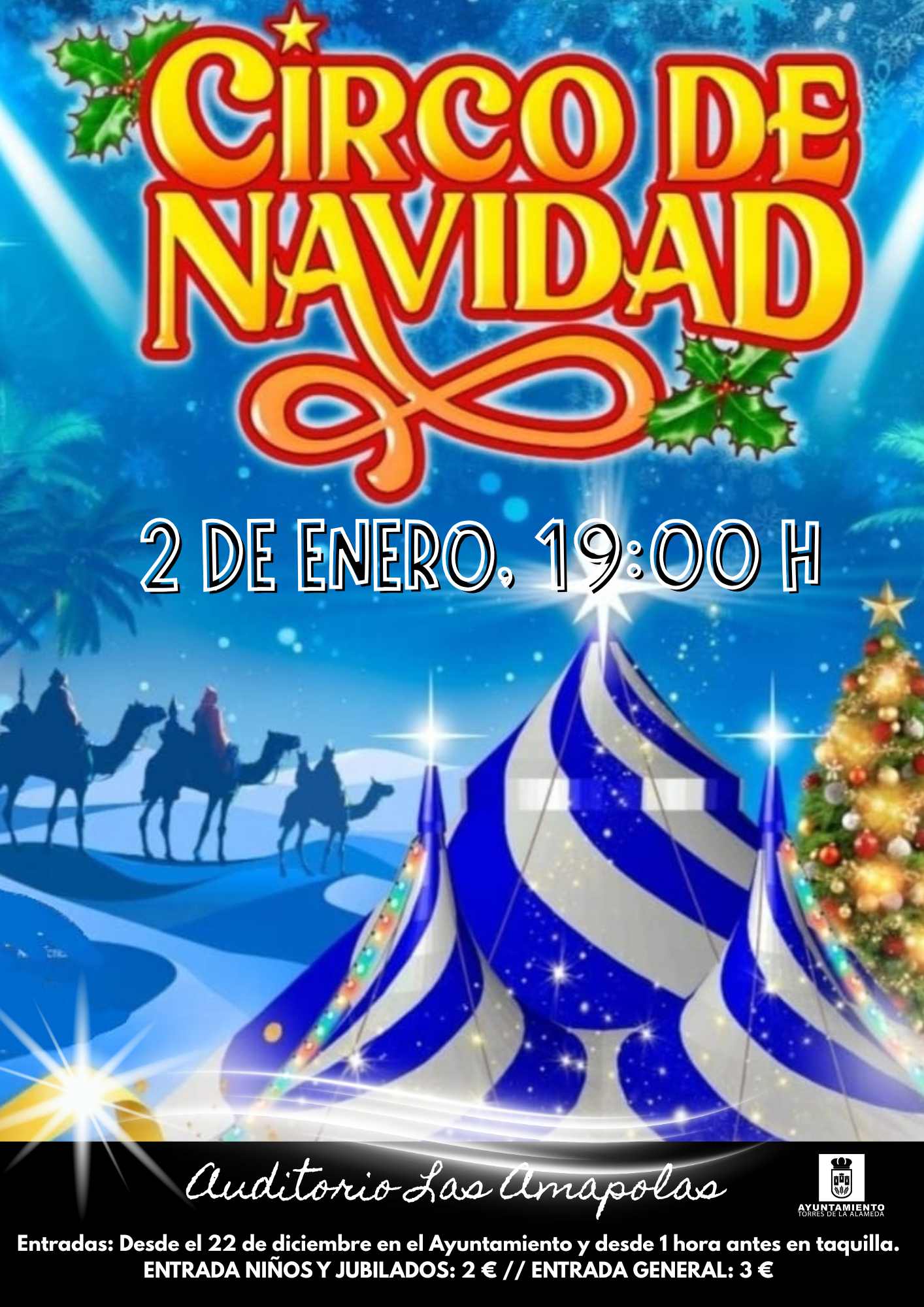 El Circo de Navidad llega a Torres el 2 de enero a las 19:00 h en el Auditorio Las Amapolas, disfrutaremos de malabaristas, acróbatas y mucho humor para disfrutar en familia.