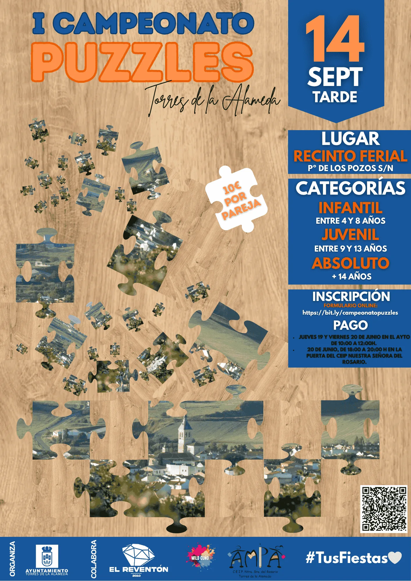 10 € por pareja. Al finalizar el concurso se llevarán a casa el puzzle que hayan montado.