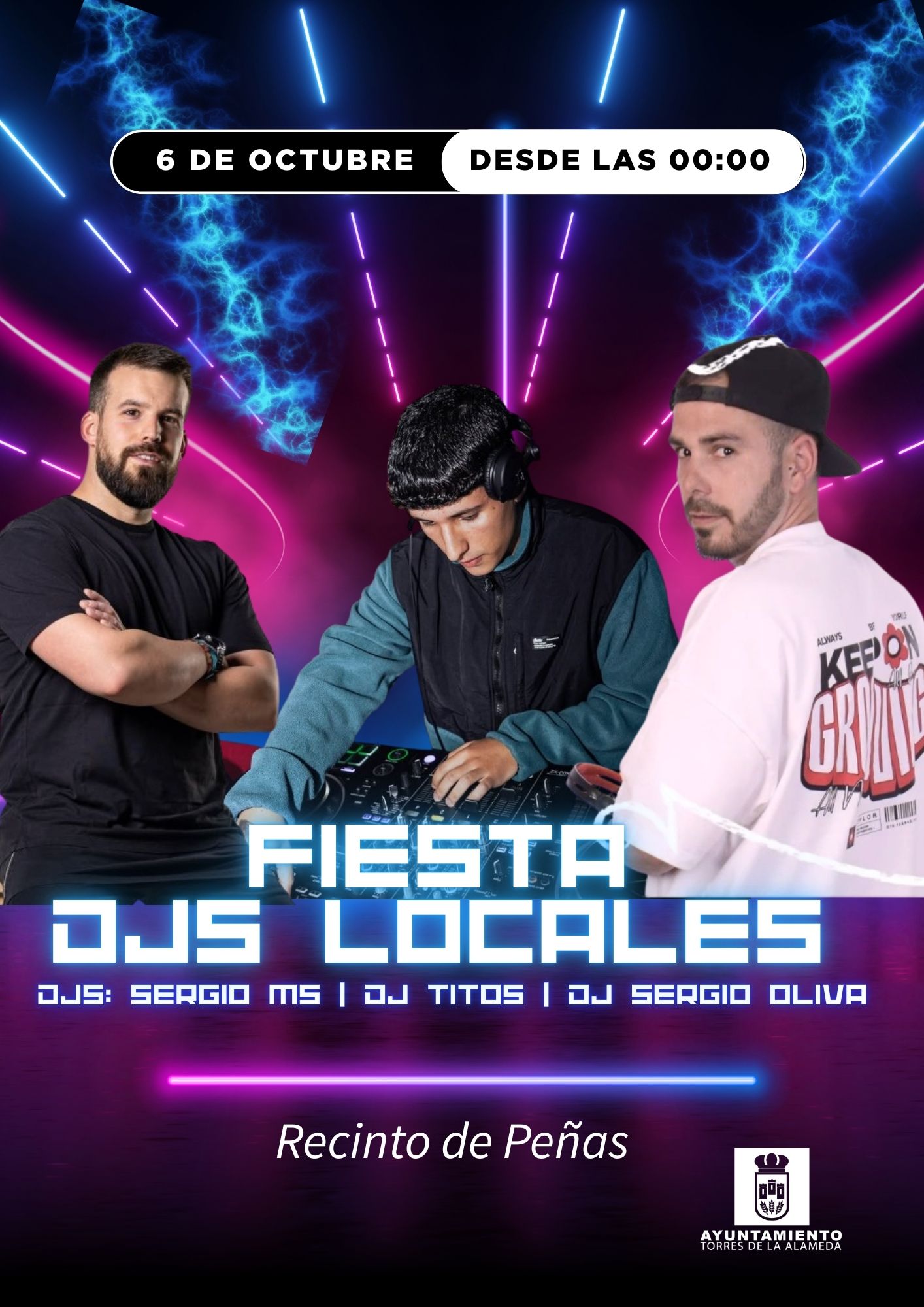 Sergio MS, DJ Titos y Dj Sergio Oliva. Recinto de Peñas.