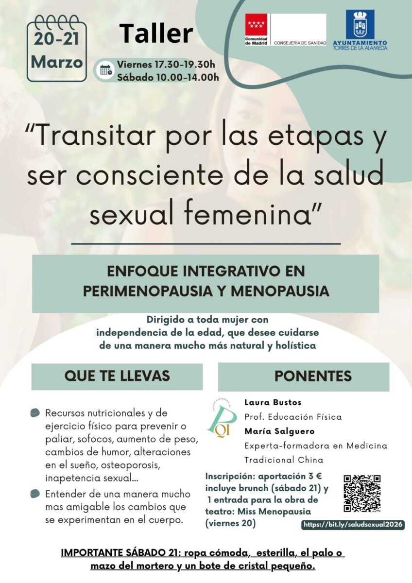 Bajo el título “Transitar por las etapas y ser consciente de la salud sexual femenina” se abordará desde un enfoque integrativo que abarca la nutrición, el ejercicio físico, pautas para paliar los síntomas, alteraciones del sueño, salud sexual…