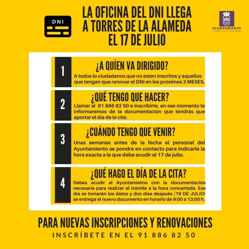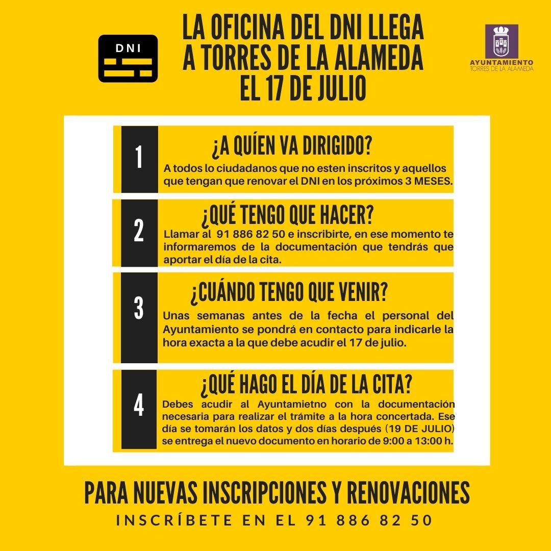 La Oficina Móvil del DNI estará en Torres de la Alameda el 17 de julio.