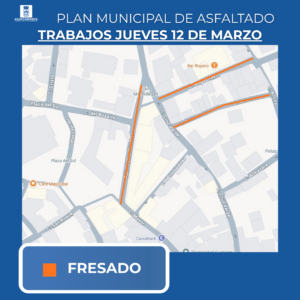 El Ayuntamiento de Torres de la Alameda continúa desarrollando el Plan Municipal de Asfaltado, con nuevas actuaciones previstas para el miércoles 12 de marzo en diferentes puntos del municipio. Estas intervenciones forman parte del programa de mejora y mantenimiento del viario municipal que se está ejecutando durante las últimas semanas.