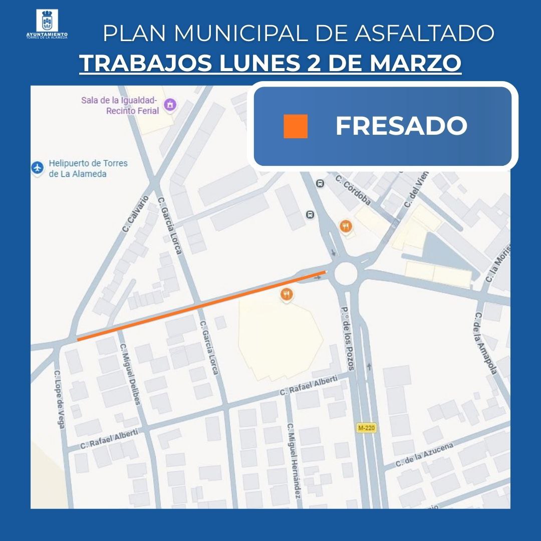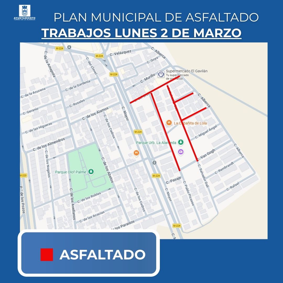 Dentro del Plan Municipal de Asfaltado, el próximo lunes se llevarán a cabo las siguientes actuaciones: