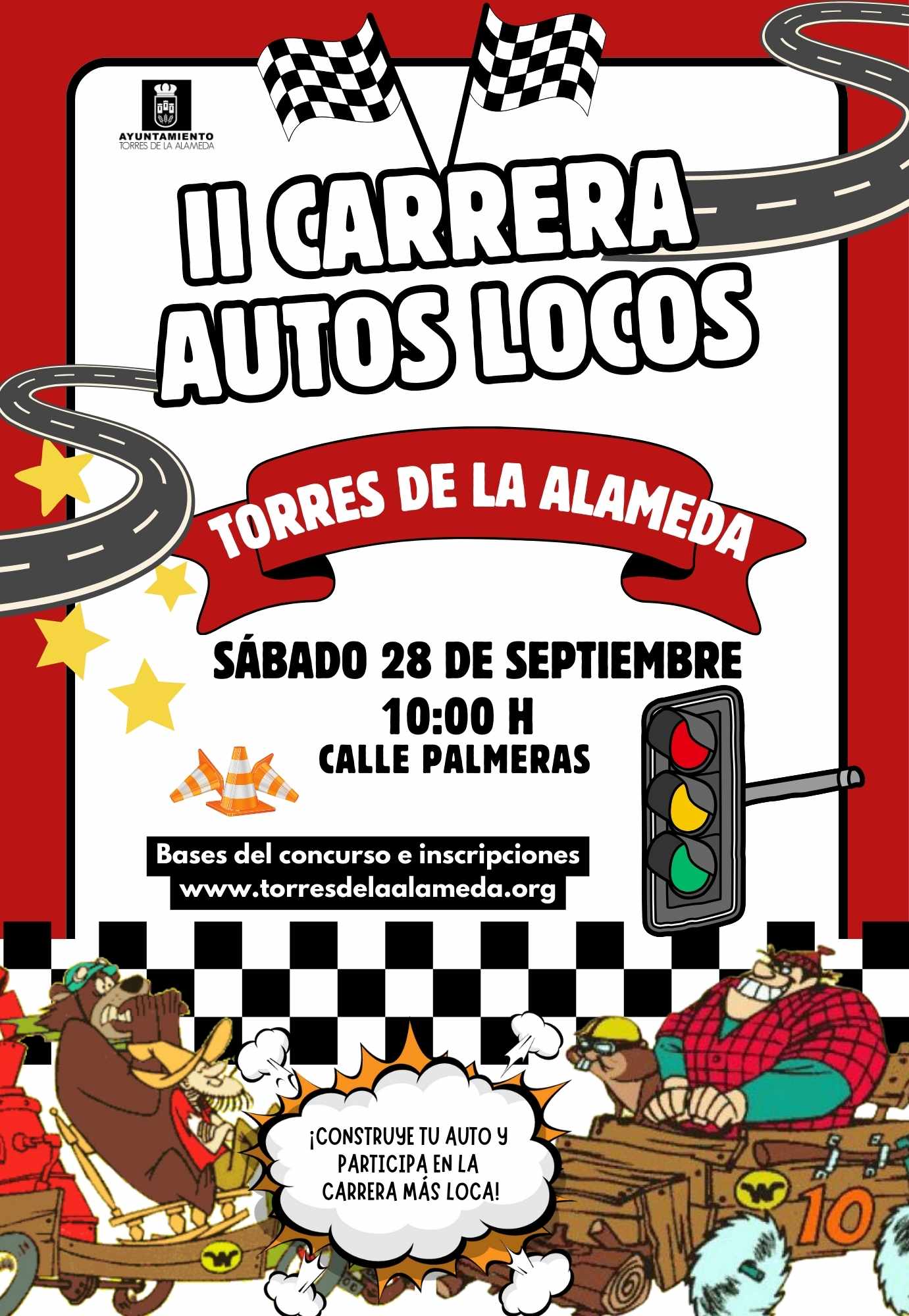 Prepárate para disfrutar de los coches más divertidos y extravagantes . Te esperamos el sábado 28 de septiembre a las 10:00 h en la Calle Palmeras para dar inicio a esta loca carrera.