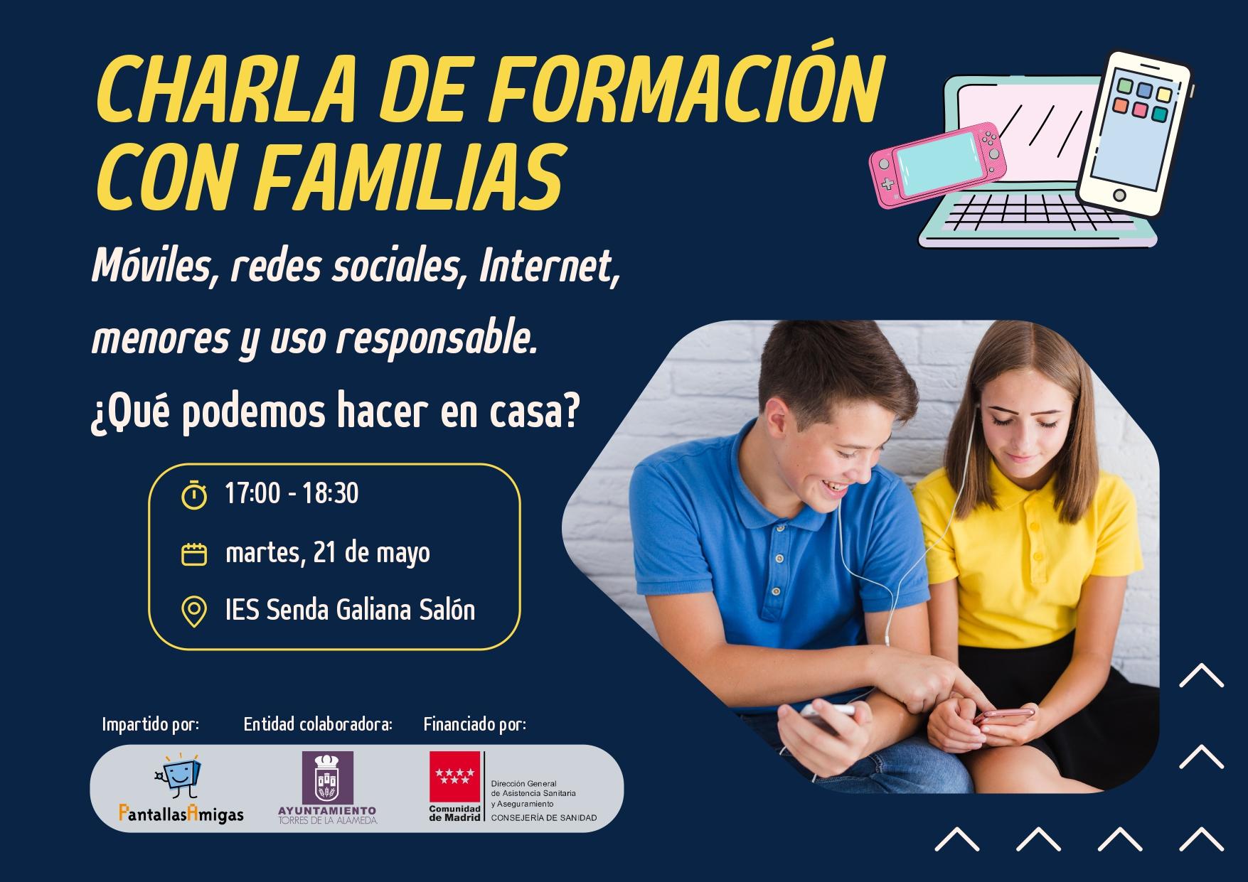 La mesa de salud de Torres de la Alameda, formada por el Ayuntamiento, el Centro de Salud y los centros educativos de nuestro municipio con el apoyo de la Consejería de Sanidad de la Comunidad de Madrid, pone en marcha dos charlas dos talleres para educar a las familias en las buenas prácticas con los dispositivos móviles y pantallas.