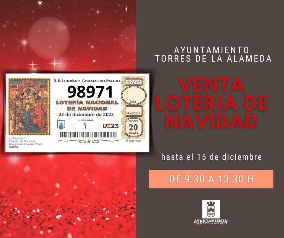 El viernes 15 de diciembre será el último día habilitado para adquirir la lotería del Ayuntamiento de Torres de la Alameda.